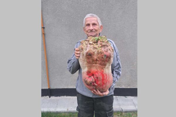 Kybartuose gyvenantys Saulius ir Veronika Klasavičiai šį rudenį užaugino tokio dydžio pašarinį runkelį, kad nuo daržo iki namų jį teko vežti karučiu. Milžinui iki oficialiai Lietuvoje užfiksuoto rekordo pritrūko tik